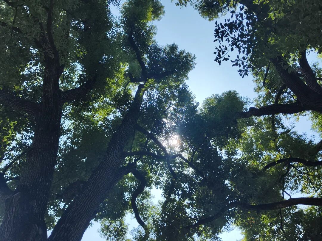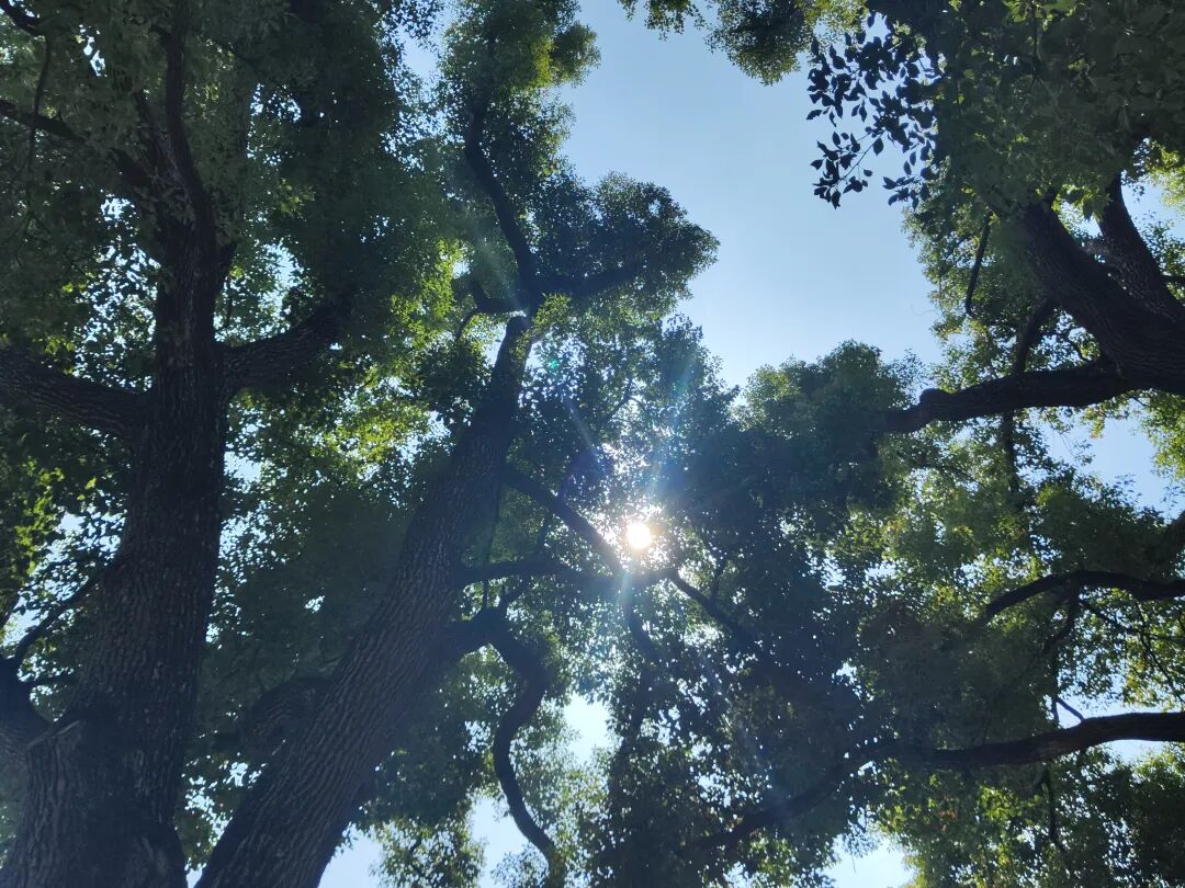 初夏时节,天朗气清,阳光明媚。树林中的树木,枝繁叶茂,绿的树叶在阳光的透射下显得半透明,日光给树叶的边缘绘上一道耀眼的金色描边。而在树枝与树枝、树叶与树叶层层叠叠纵横交错的缝隙之间,几缕阳光投射下来,在地上形成了斑斑驳驳的影子(其实就是简单的小孔成像的原理,但是说出这个词的时候可能没有那么有趣了,还是夹杂着想象来的有趣一点)。而到了深秋季节,树叶或是变黄,或是变红,阳光也不再那么刺眼,晴朗的秋天的煦风吹过,树叶互相摩擦发出沙沙的声音。